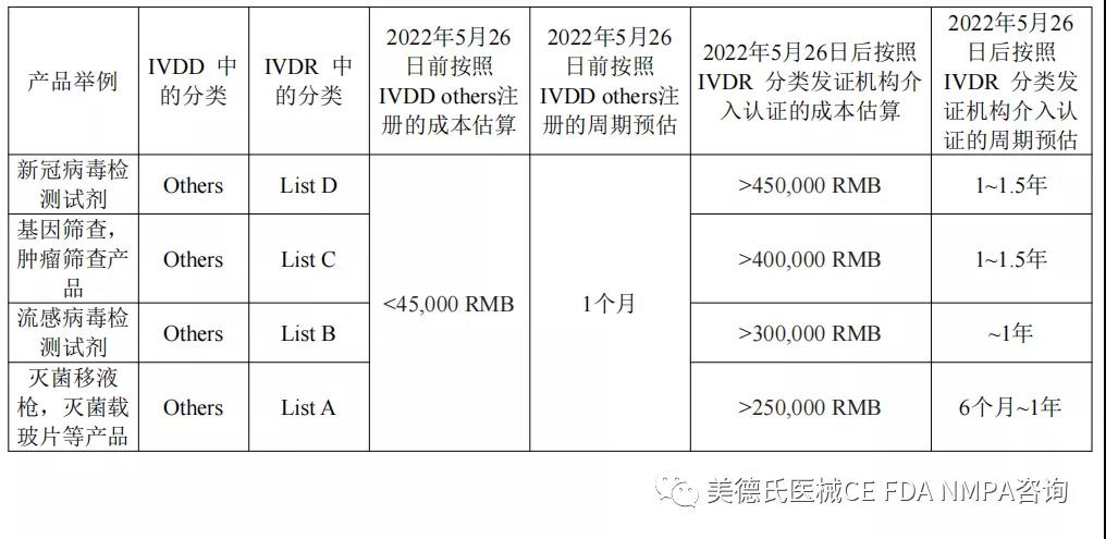 所以對于IVD生產(chǎn)商而言,在2022年5月26日前完成注冊,可以按照現(xiàn)行的IVDD指令下的other分類進(jìn)行注冊無論從時間和性價比上而言無疑是好的選擇。