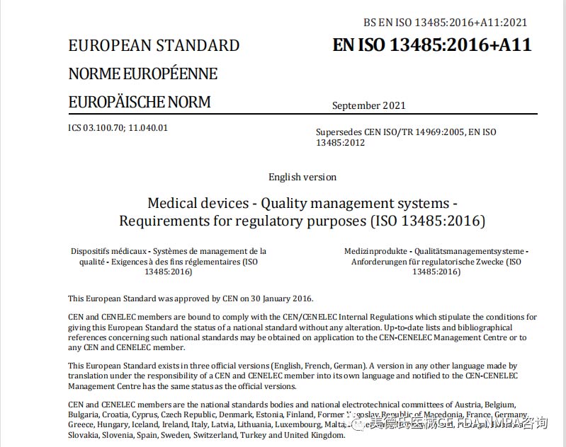 【新標發(fā)布】EN ISO 13485:2016+A11:2021標準發(fā)布!文中有免費獲取方法!