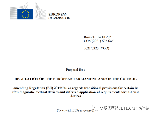 歐盟于近日頒布了醫(yī)療器械新法規(guī)IVDR延期的提案,2017/746/EU法規(guī)原文第110條(過(guò)渡性條款)中規(guī)定了IVD器械的過(guò)渡轉(zhuǎn)換期,該提案修正了該過(guò)渡期,數(shù)量眾多的低風(fēng)險(xiǎn)等級(jí)器械將會(huì)有更長(zhǎng)的過(guò)渡期,并且,由發(fā)證機(jī)構(gòu)介入發(fā)證的IVD產(chǎn)品的過(guò)渡期將會(huì)延長(zhǎng)到2025年5月26日。