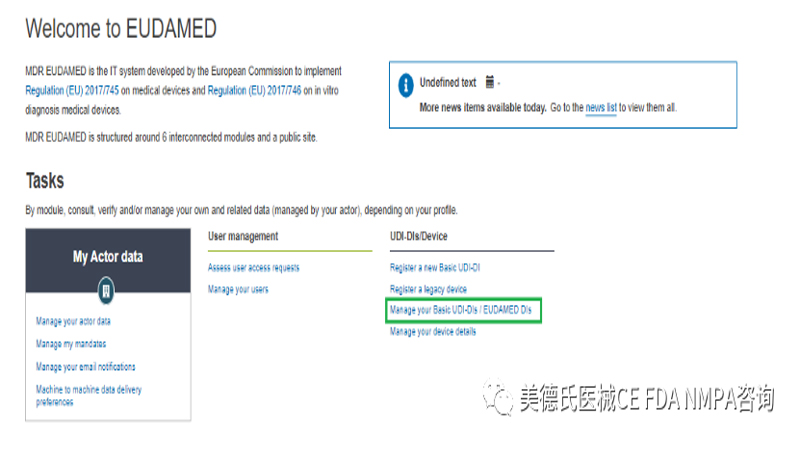 登錄后,我們進(jìn)入到這個界面:點(diǎn)擊“Register a new Basic UDI-DI”