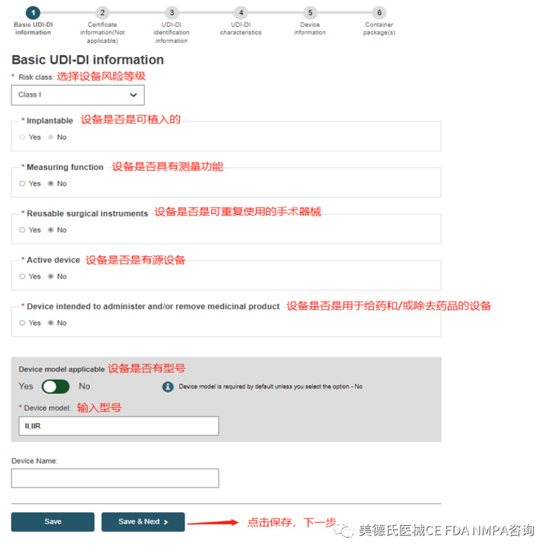 a.設(shè)備類型是Class I 和Class IIa的,Step2不用填寫,直接跳到了Step3-UDI-DI identification information;